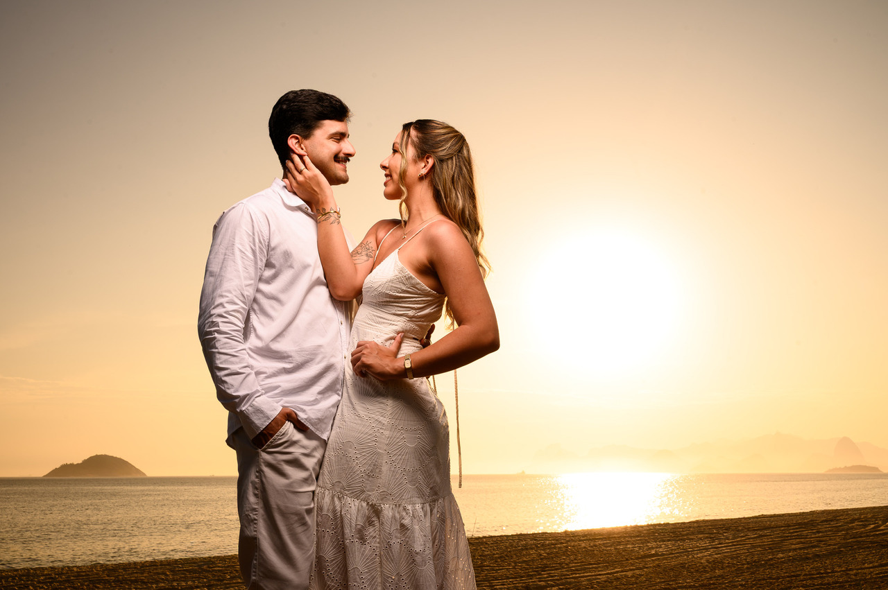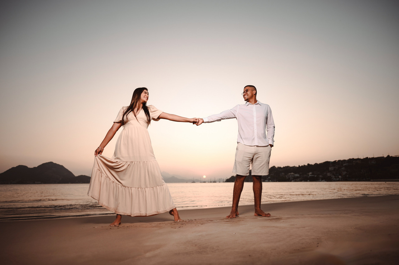 Com areia clara e mar azul, Camboinhas é perfeita para casais que querem um ensaio com vibe praiana e sofisticada.